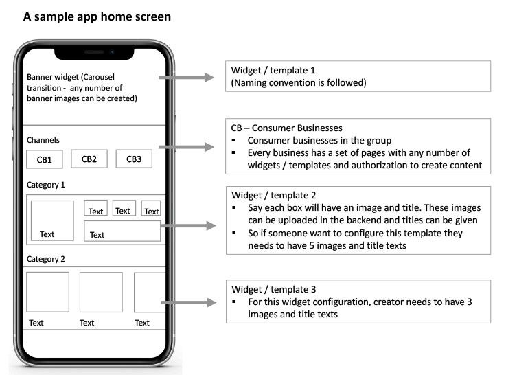 Channels are consumer businesses in the group and each channel will have pages in the app to showcase services, customized offers, and promotions; respective channel SPOCs will be defining and configuring the widgets in AEM.